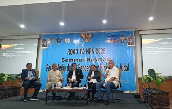 MITRAPOL.com, Jakarta — Road to HPN 2025 menggelar Seminar Nasional “Peran Media dalam Pencegahan Pinjol dan Judol” dengan menghadirkan empat narasumber dari Perlindungan Konsumen Otoritas Jasa Keuangan (OJK), LKBPH PWI Pusat, dan Dekan Fakultas Hukum dan Dekan Fakultas Fikom Universitas Sahid Jakarta.