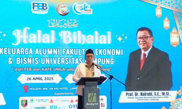 Lebih lanjut, Gubernur menekankan peran strategis alumni FEB Unila dalam menghadapi bonus demografi dan menciptakan lapangan kerja di Lampung.