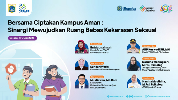 Mengusung tema “Bersama Ciptakan Kampus Aman: Sinergi Mewujudkan Ruang Bebas Kekerasan Seksual,” kegiatan ini menjadi bagian dari komitmen institusional UHAMKA dalam menciptakan lingkungan akademik yang aman, inklusif, serta bebas dari segala bentuk kekerasan, khususnya kekerasan seksual.