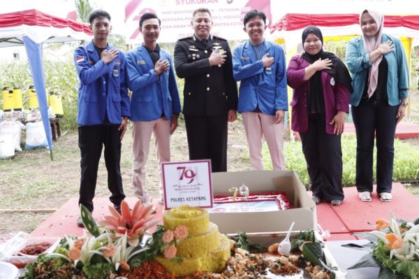 Pada syukuran ini pula, Kapolres Ketapang bersama tamu undangan, melakukan potong tumpeng sebagai wujud kekompakan, kolaborasi dan kebersamaan dalam moment Hari Bhayangkara Ke-79. Dikesempatan itu pula, Kapolres Ketapang memberikan bantuan sosial berupa sembako, pupuk pertanian serta alat pertanian kepada para petani yang hadir. Kapolres Ketapang berharap, bantuan tersebut dapat meringankan kebutuhan sehari hari serta membantu petani dalam mengelola lahan pertanian.