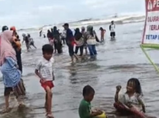 Terpantau, suasana di sejumlah pantai di Kabupaten Lebak tampak ramai sejak pagi hingga sore hari. Wisatawan memadati bibir pantai, bermain air, bersantai bersama keluarga, hingga mengabadikan momen liburan.